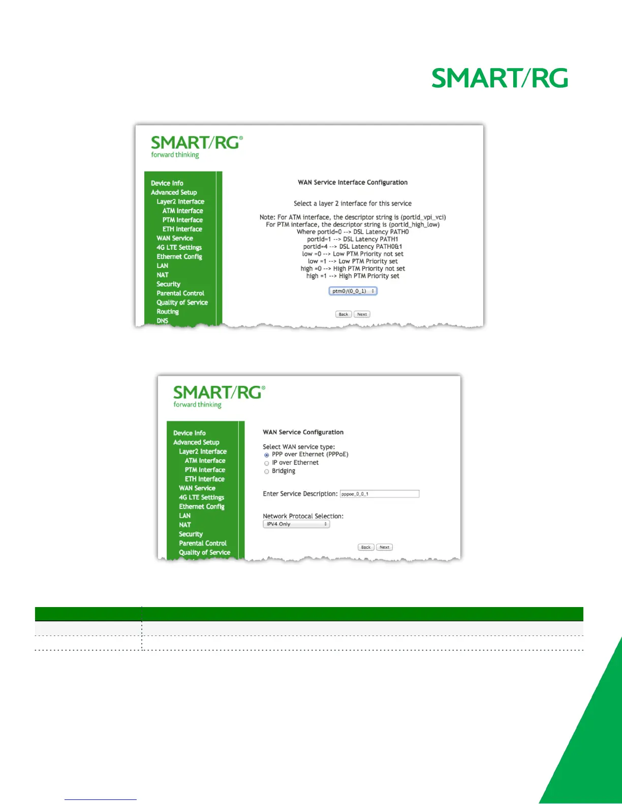 Next, select the type of WAN service you wish to create. For this example choose PPP over Ethernet.