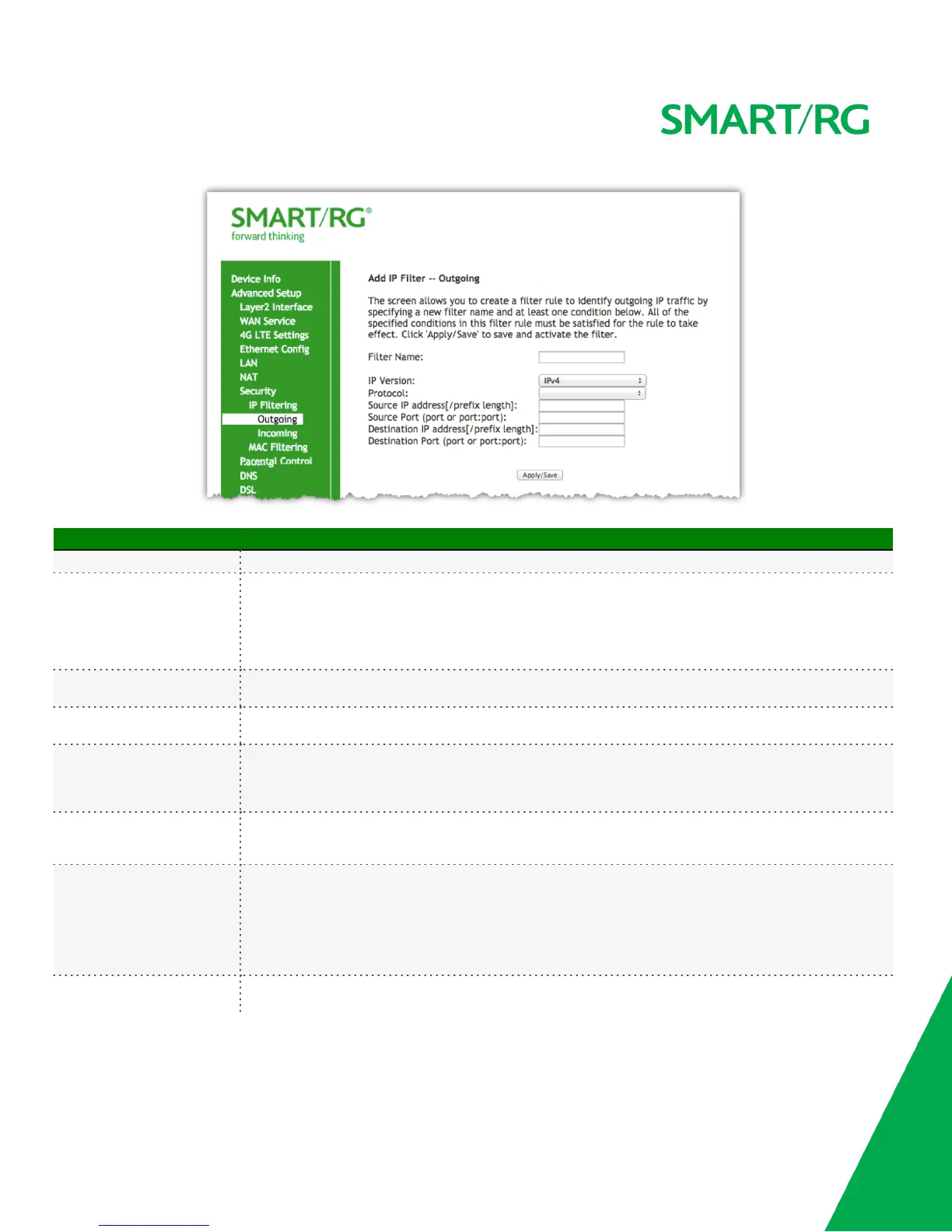 Enter the source IP address of a LAN side host for which you wish to filter/block it's outgoing traffic for the
