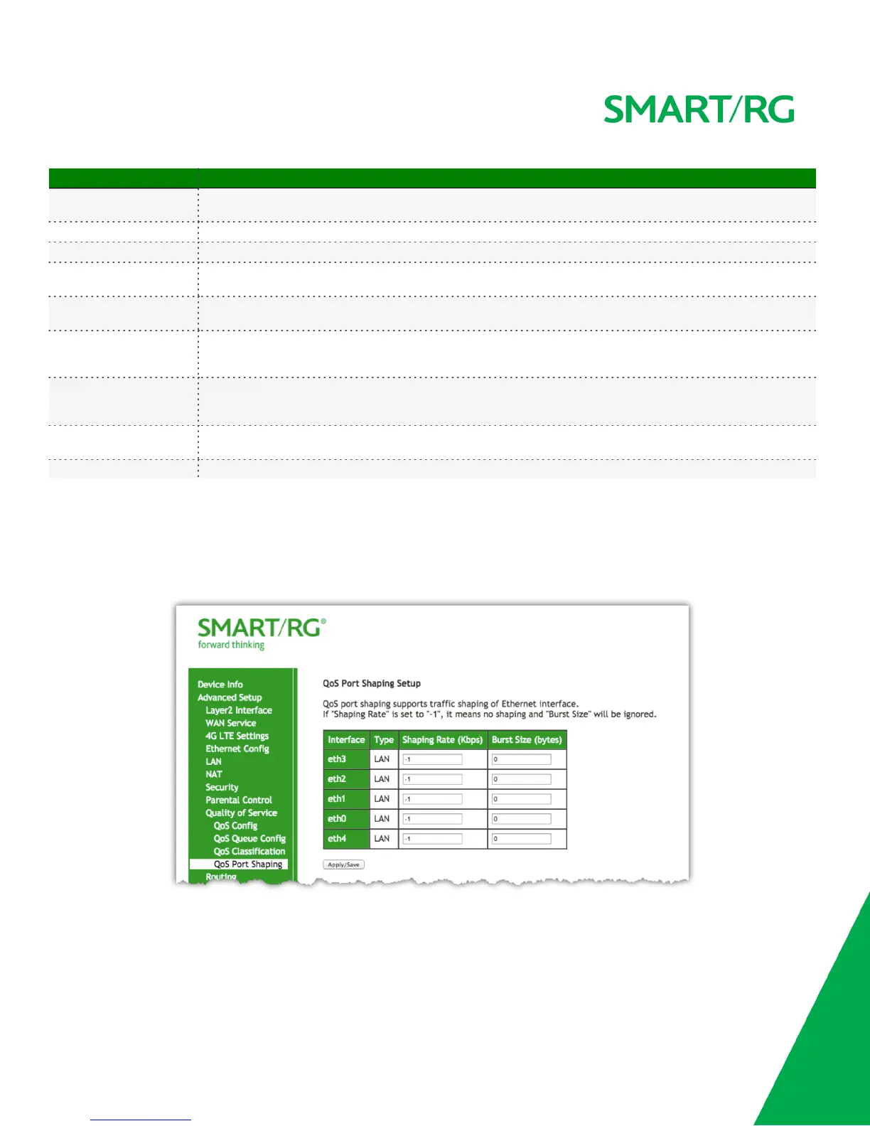 QoS Port Shaping facilitates setting a fixed rate (Kbps) for each of the Ethernet ports.