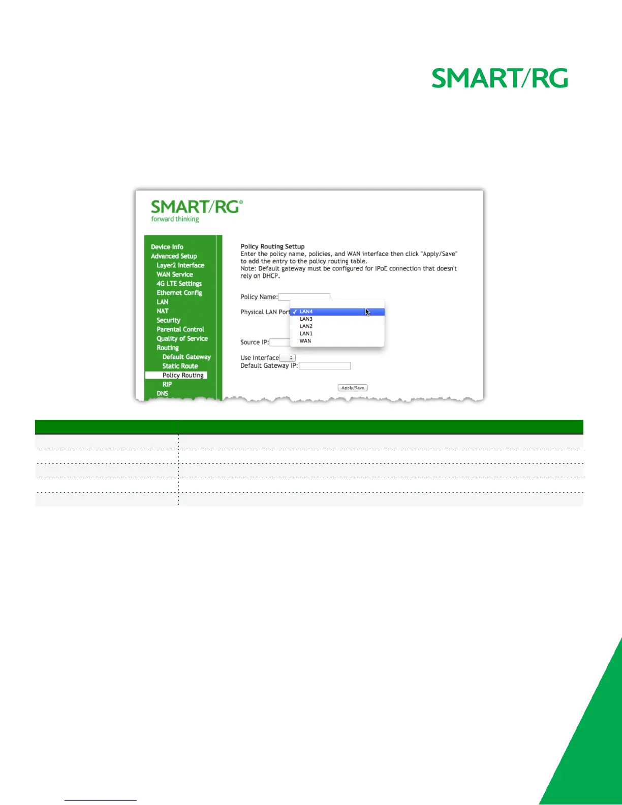 Policy Name A free-form text field. Enter a descriptive name for this entry to the policy routing table.