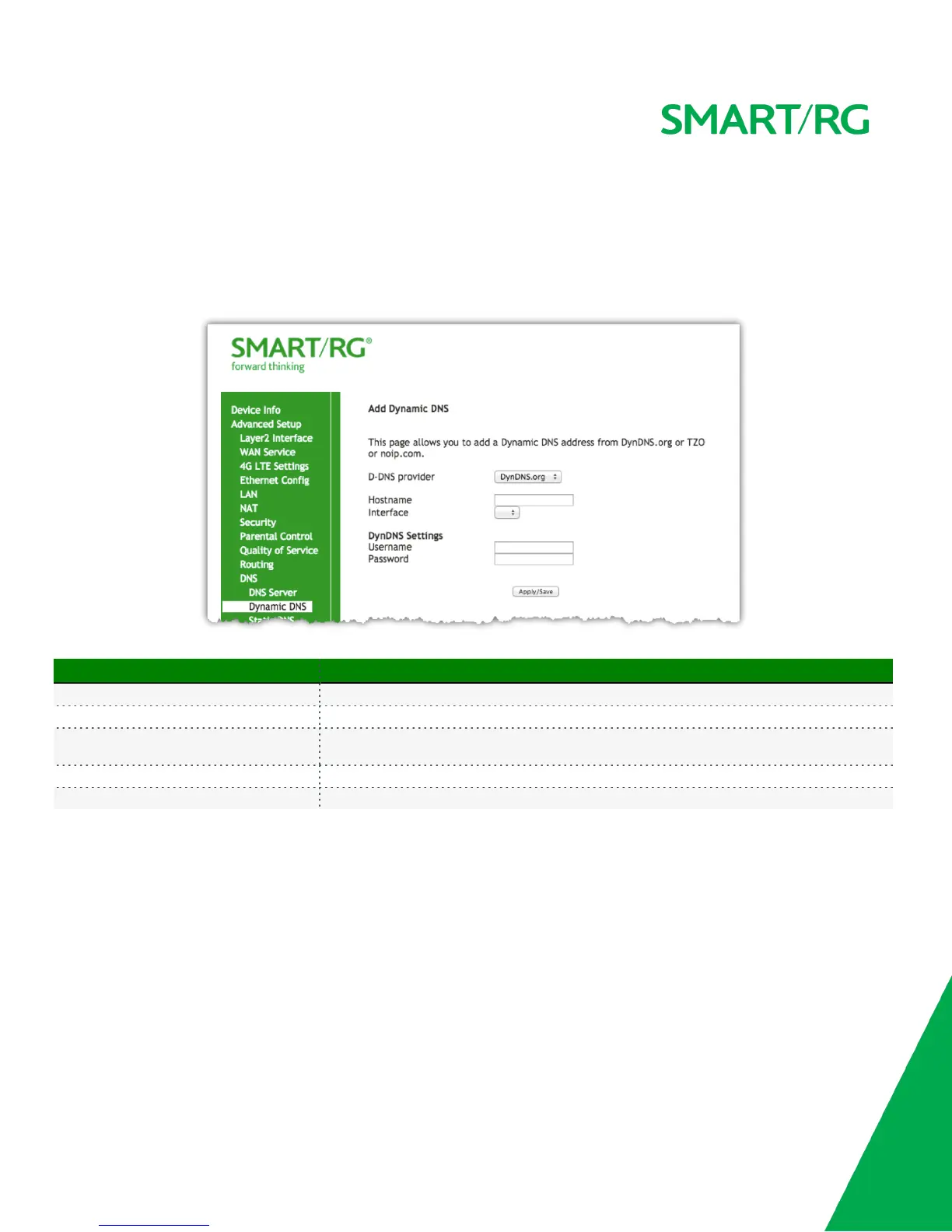 After selecting Advanced Setup -> DNS -> Dynamic DNS from the left navigation bar, click the Add button. The following screen will appear.