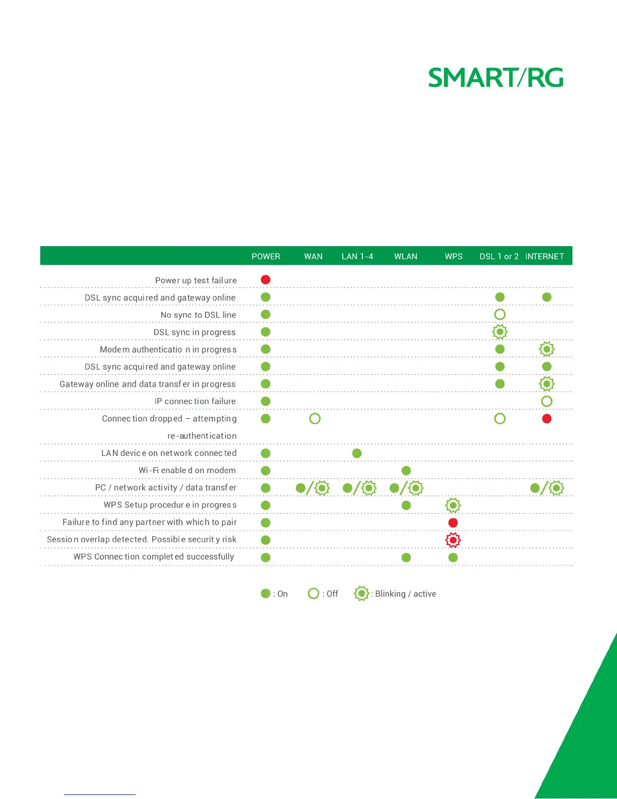 Your SmartRG gateway has several indicator lights (LEDs) on its front panel. The number of DSL ports or USB ports may vary from model to