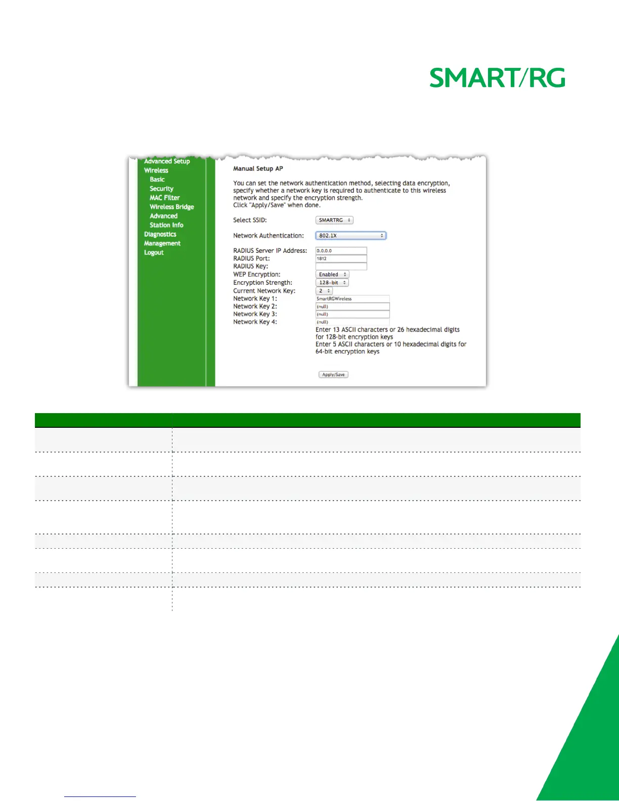 WEP Encryption [Enabled, Disabled] Select Enabled to turn on Wired Equivalent Privacy mode.