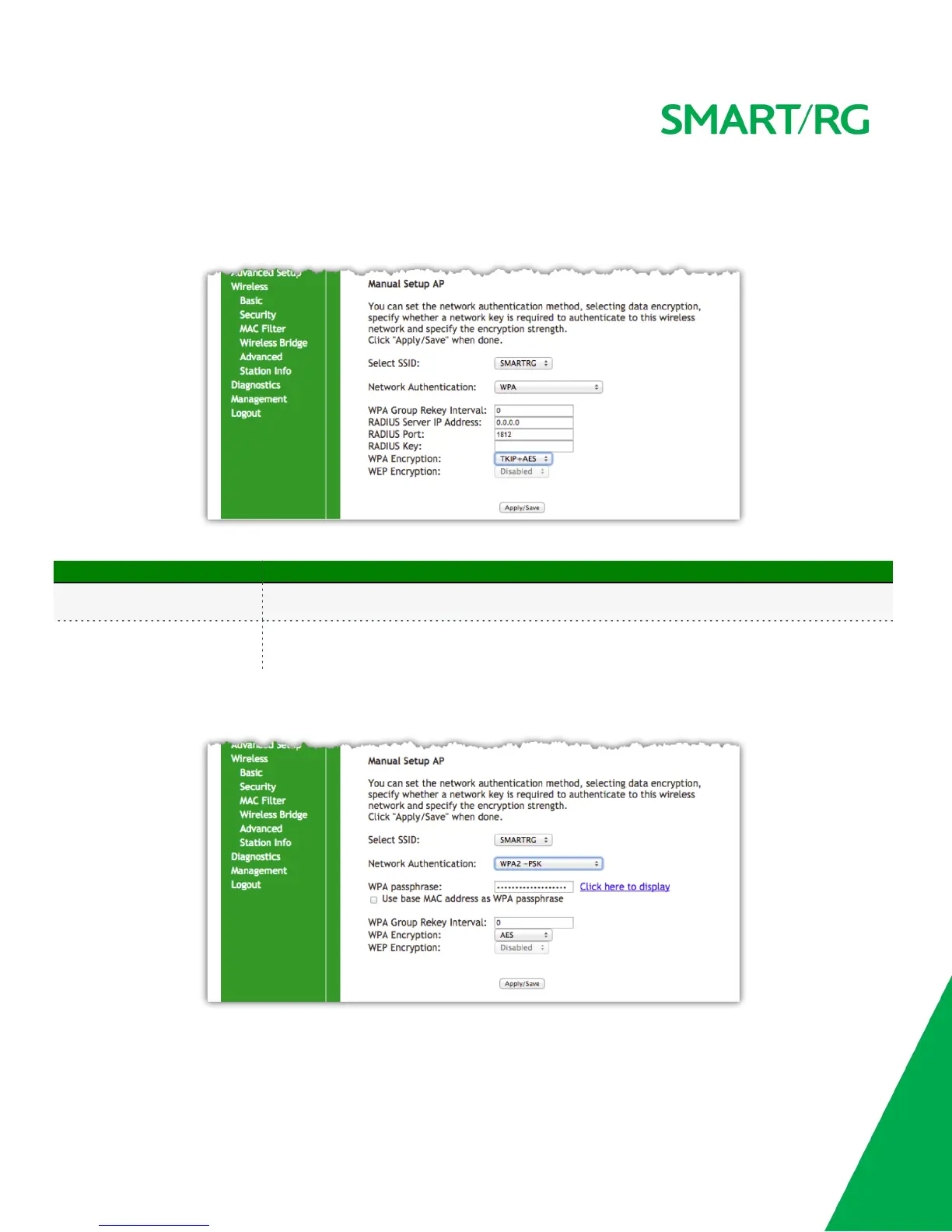 Rekey Interval and WEP Encryption. Reference the above table for field descriptions not found in the table for WPA below.