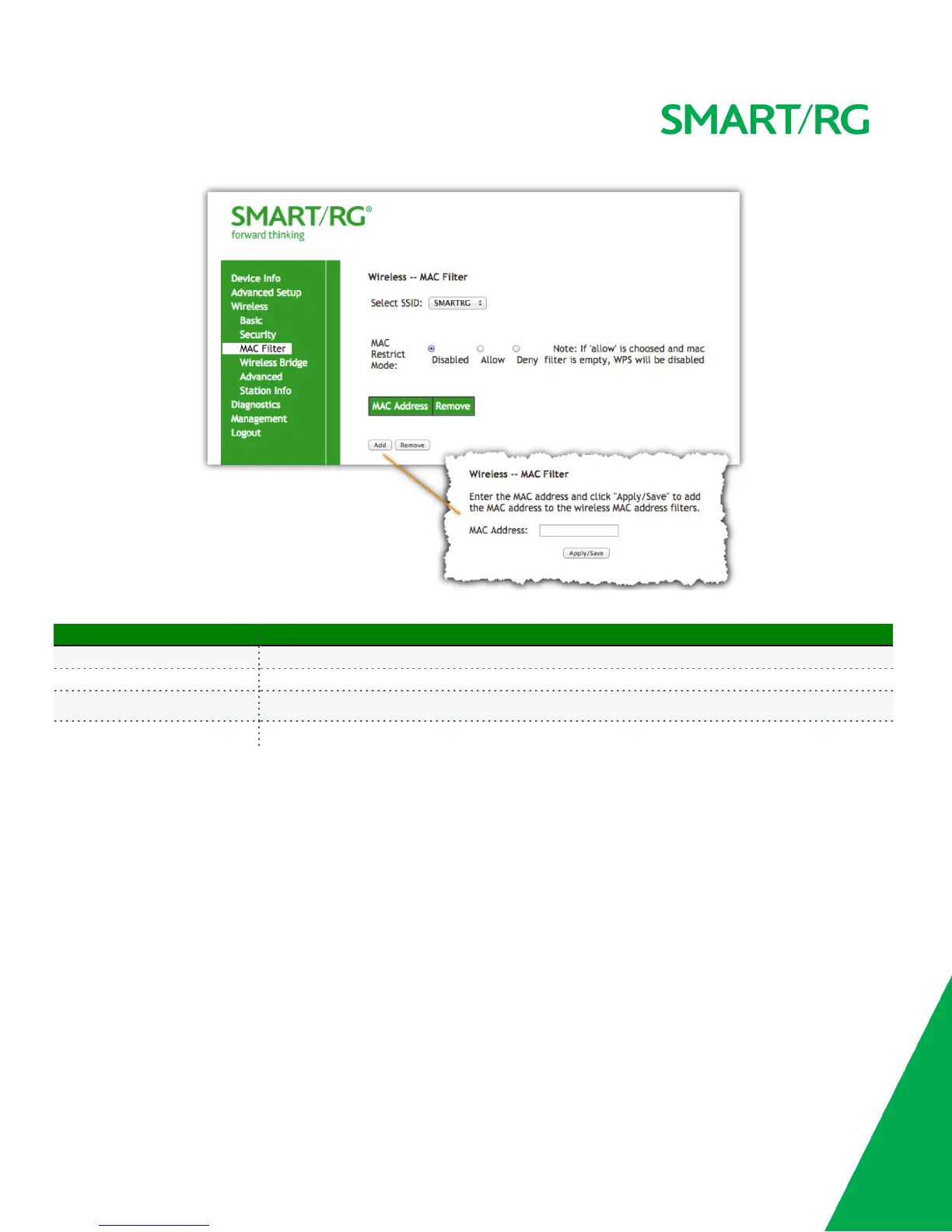MAC Restrict Mode Disabled: MAC filtering is off.