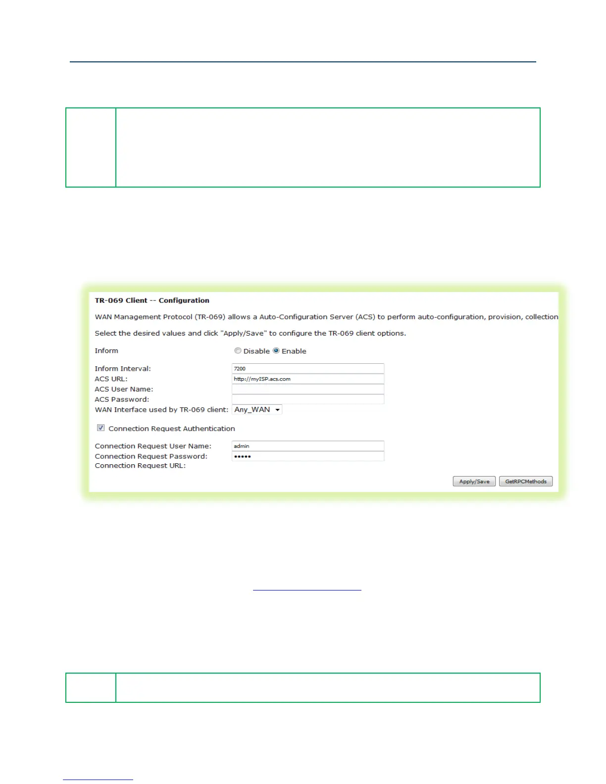 Set the “Connection Request User Name and Password” to admin/admin