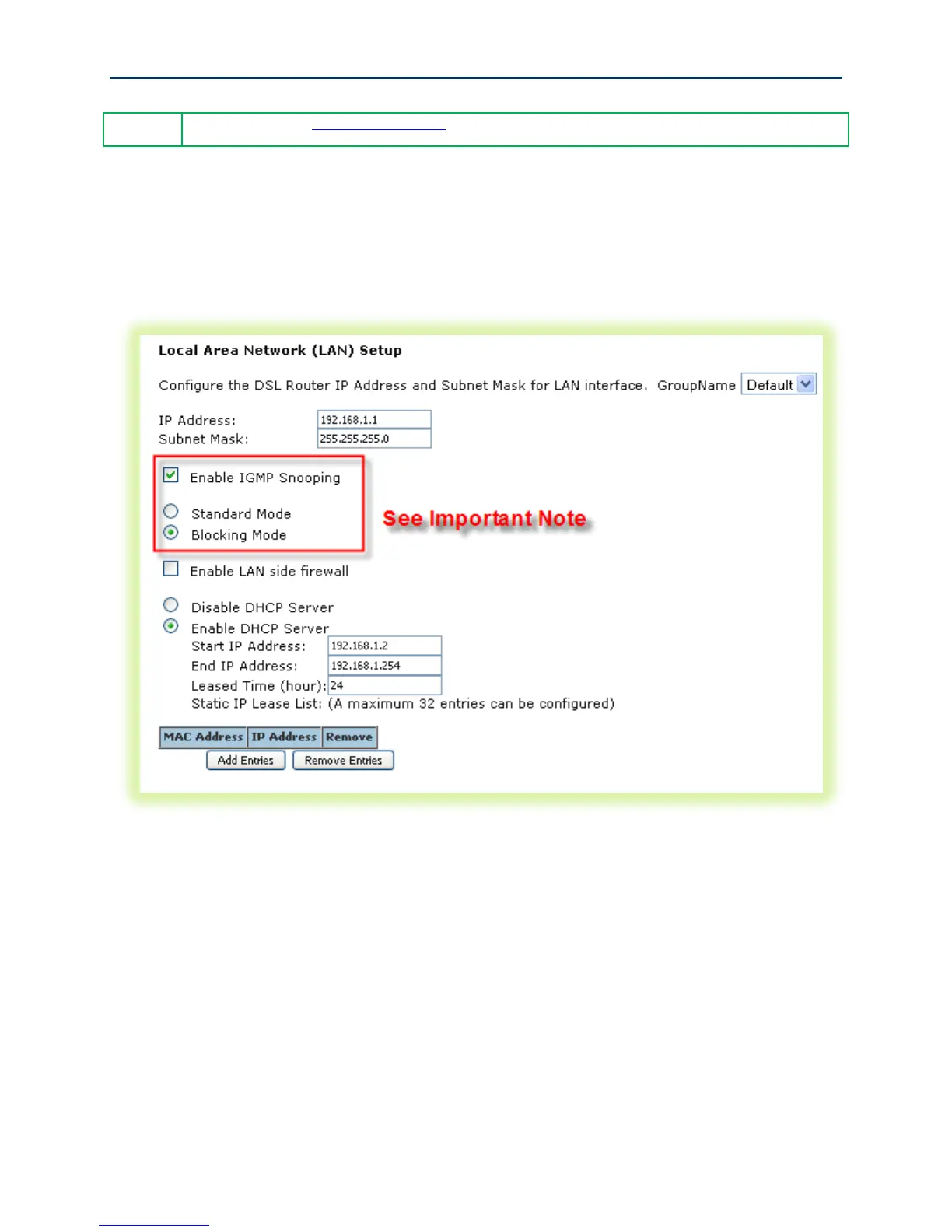 7. If you would like to create static DHCP leases for specific LAN hosts, click Add Entries.
