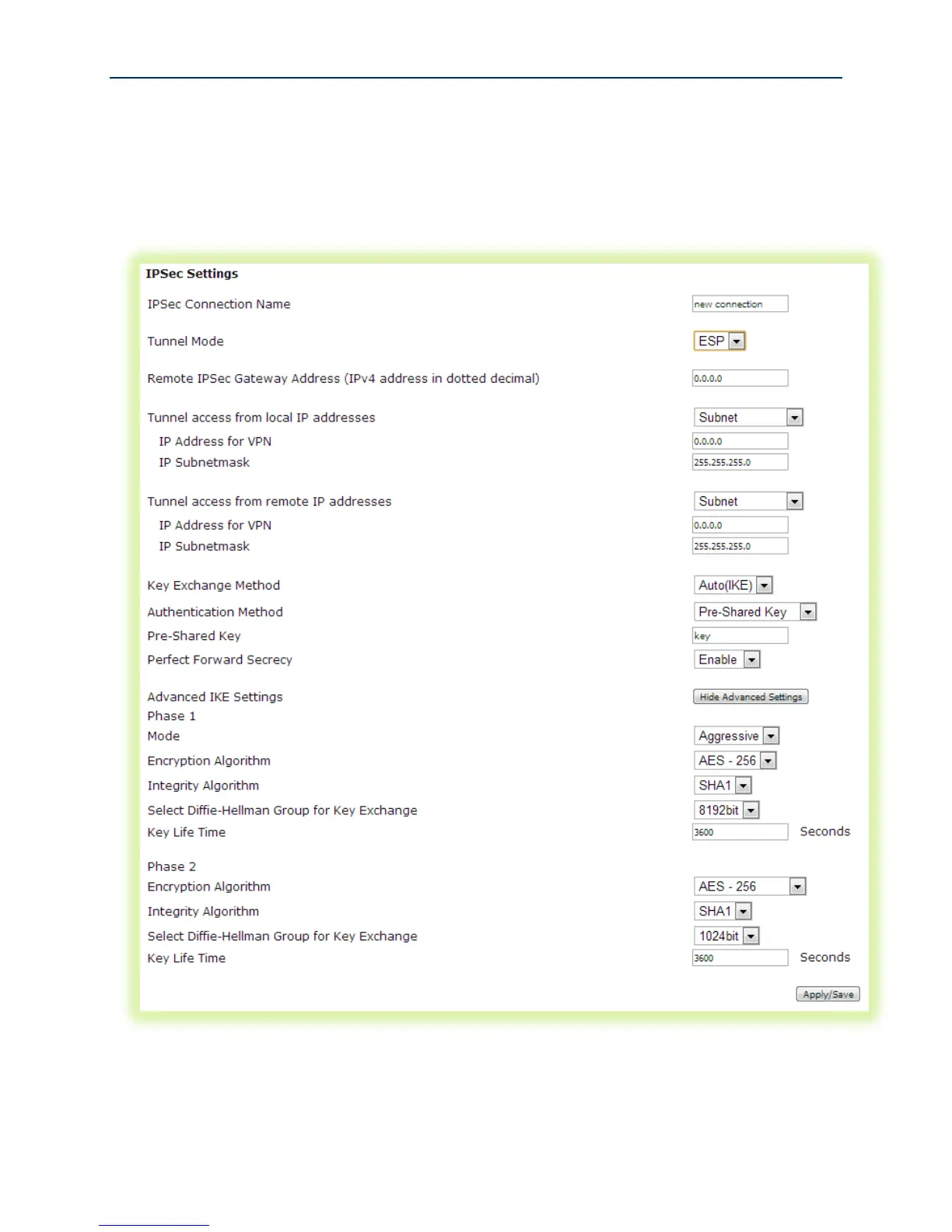 To configure IPSec in the SmartRG gateway: