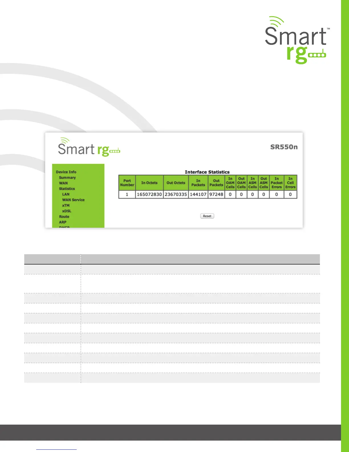 The Device Info -> Statistics -> xTM displays the ATM/PTM statistics for your SmartRG Gateway. All WAN interfaces congured