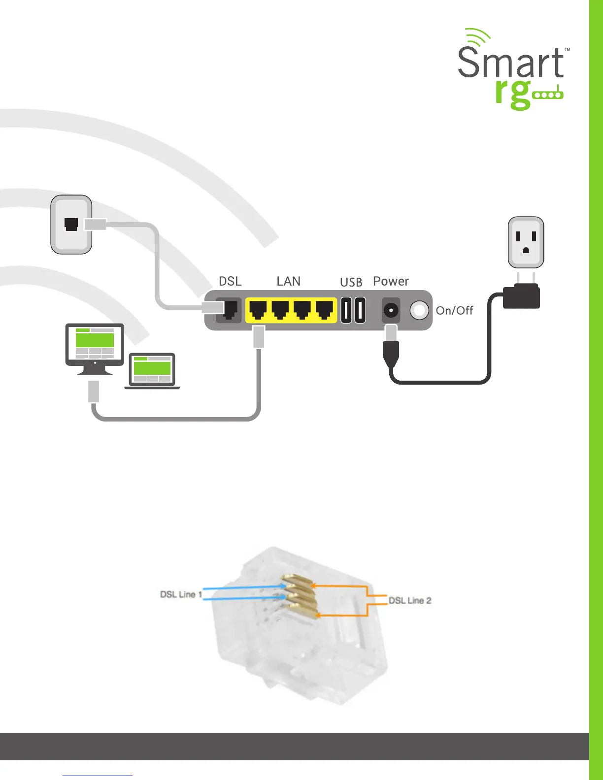 Below is a generic representation of a SmartRG gateway, however your specic model may have greater or fewer ports and con-