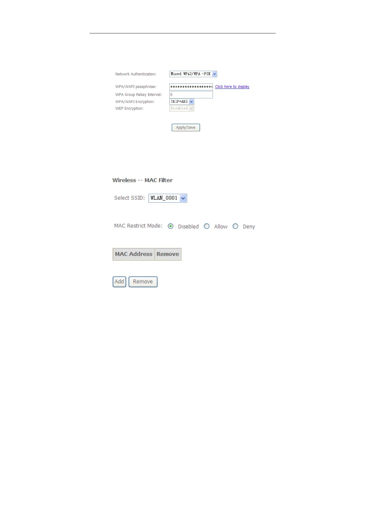 Choose Wireless > MAC Filter to display the following page.
