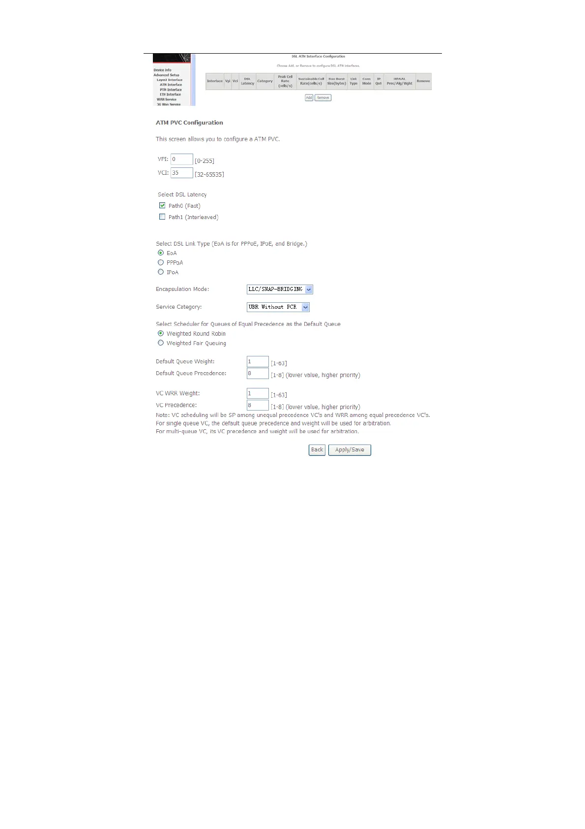 Click Add to add ATM Interface and the following page appears.