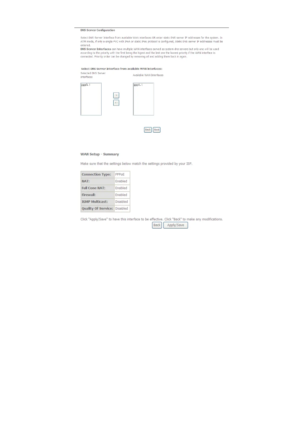 WAN interface. Click Next, and the following page appears.