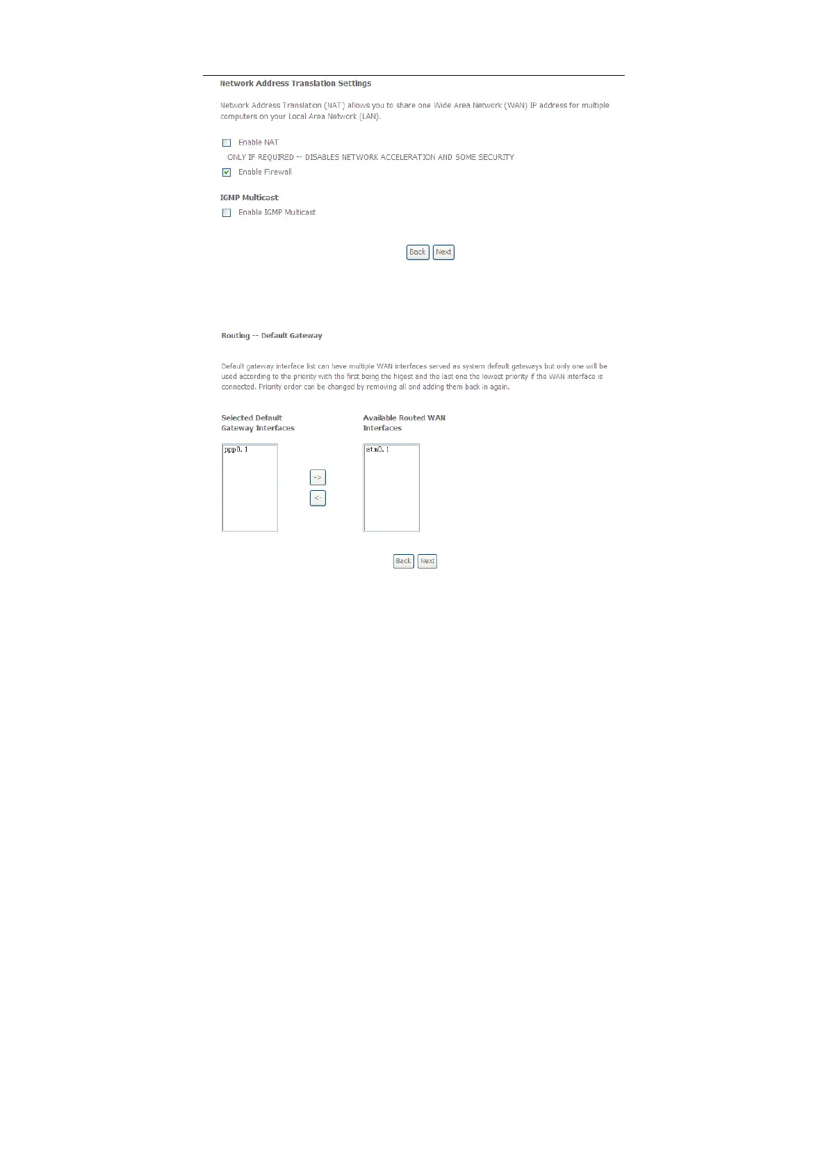 example, enabling NAT, enabling firewall, and enabling IGMP multicast.