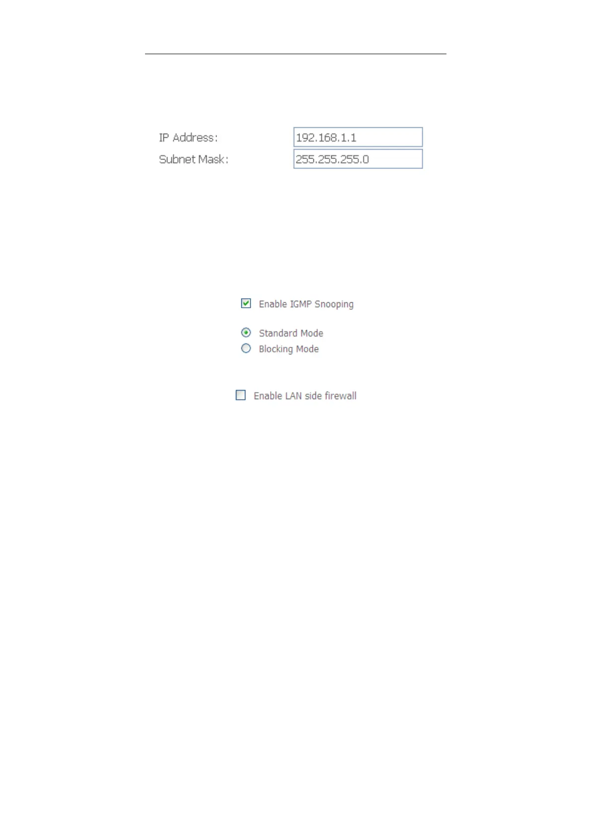In this page, you can configure an IP address for the DSL router, enable IGMP