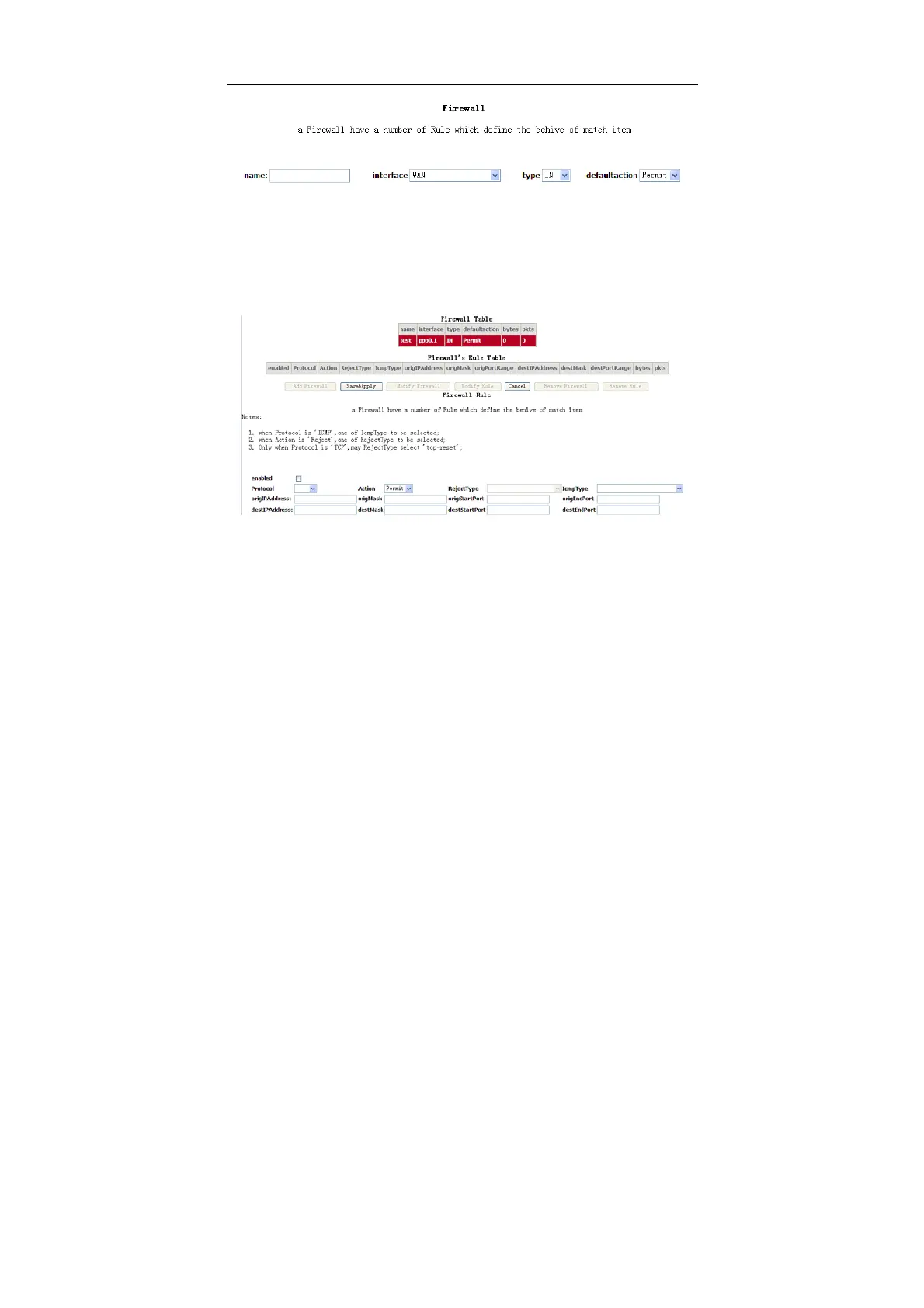 Action: You can select Permit, Drop, or Reject from the drop-down list.