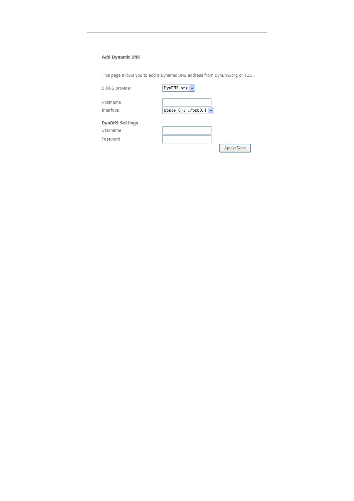 After finishing setting, click Apply/Save to save and apply the settings.
