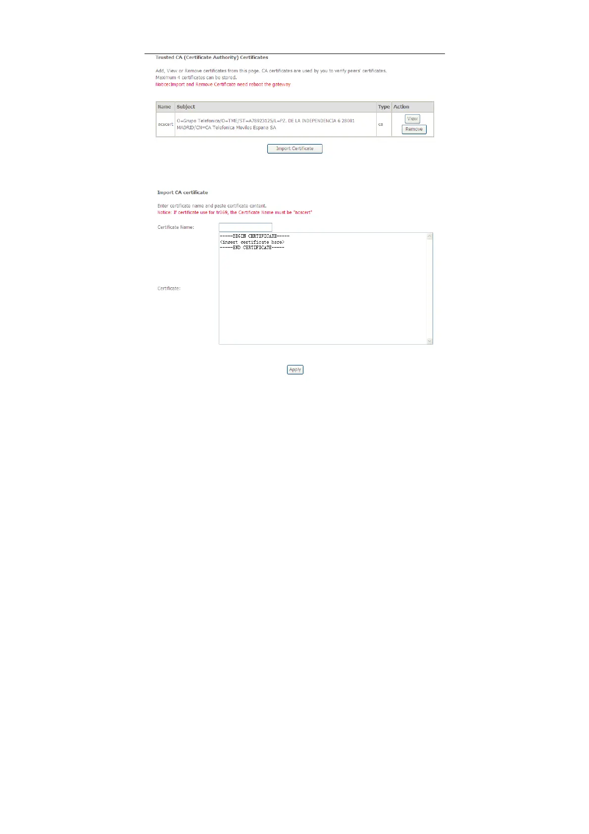 In this page, enter the certificate name and paste the certificate content. Finally,