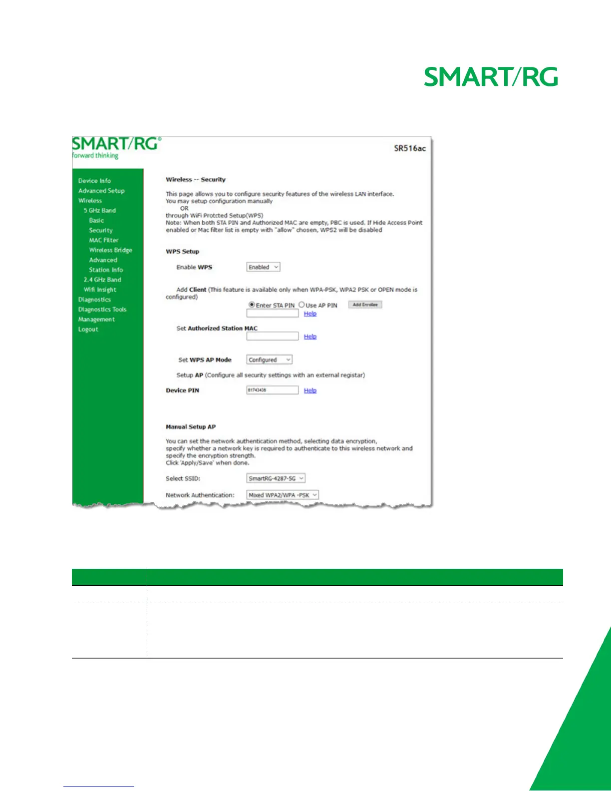 l Enter STA PIN: Type the input station PIN for the client in the field below the radio button.