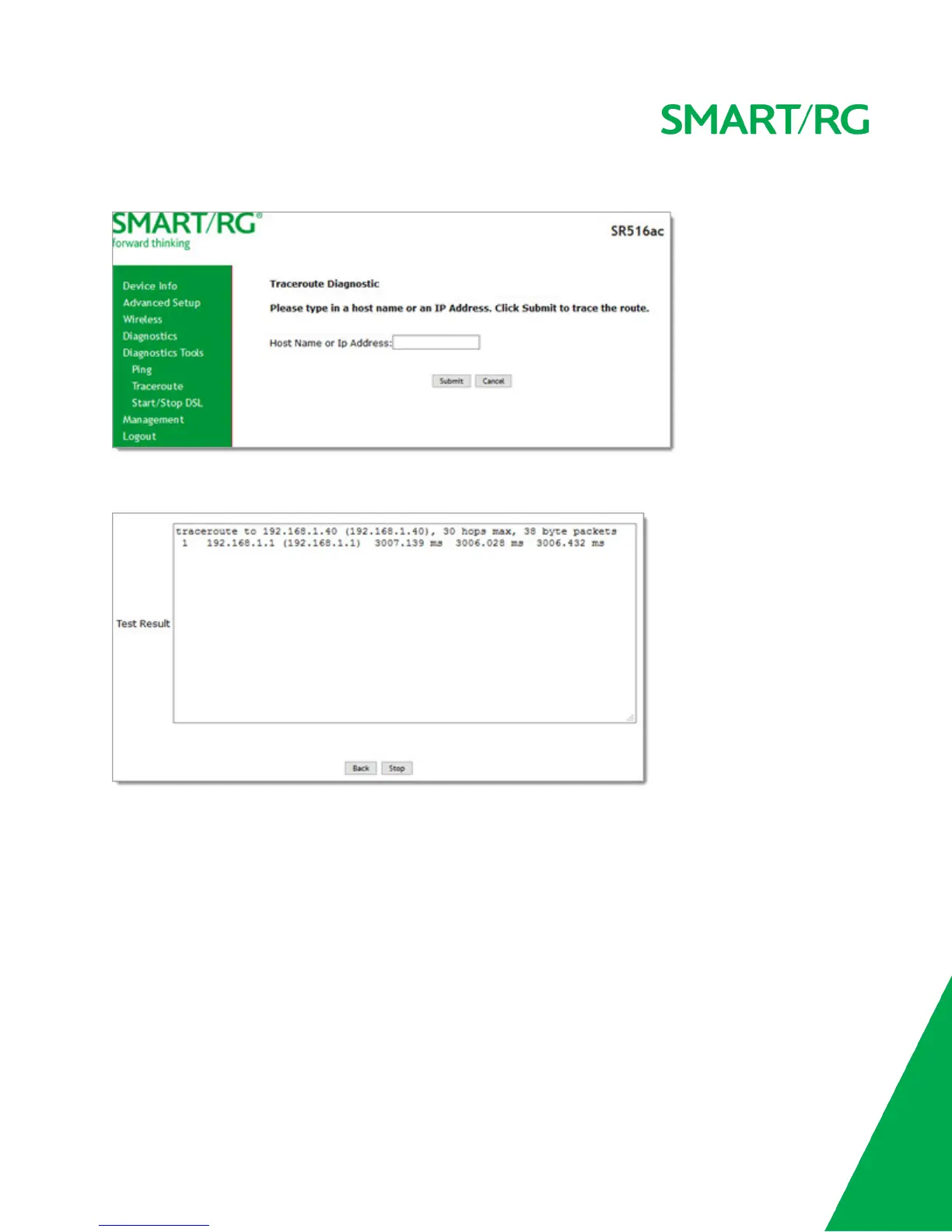 1. In the left navigation menu, click Diagnostics Tools > Traceroute. The following page appears.