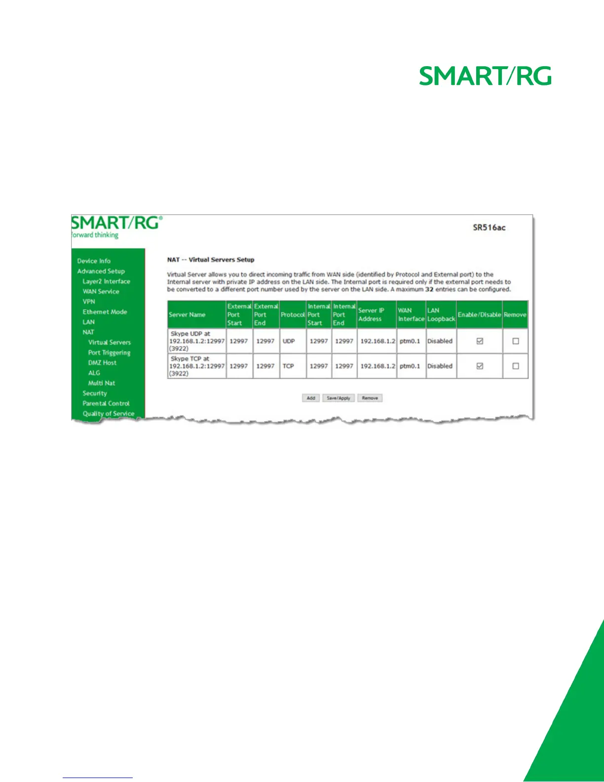 1. In the left navigation bar, click Advanced Setup > NAT > Virtual Servers. The following page appears.