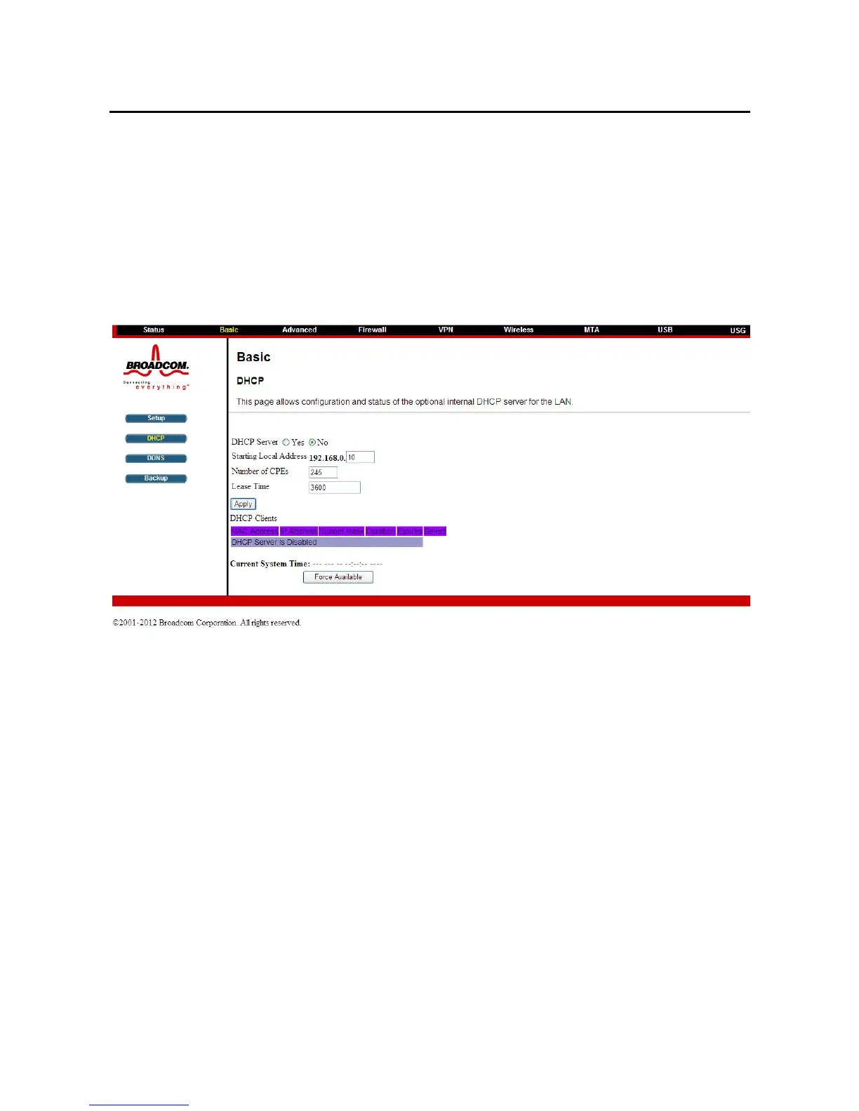 all of your PC’s IP addresses), you can disable the internal DHCP server by selecting
