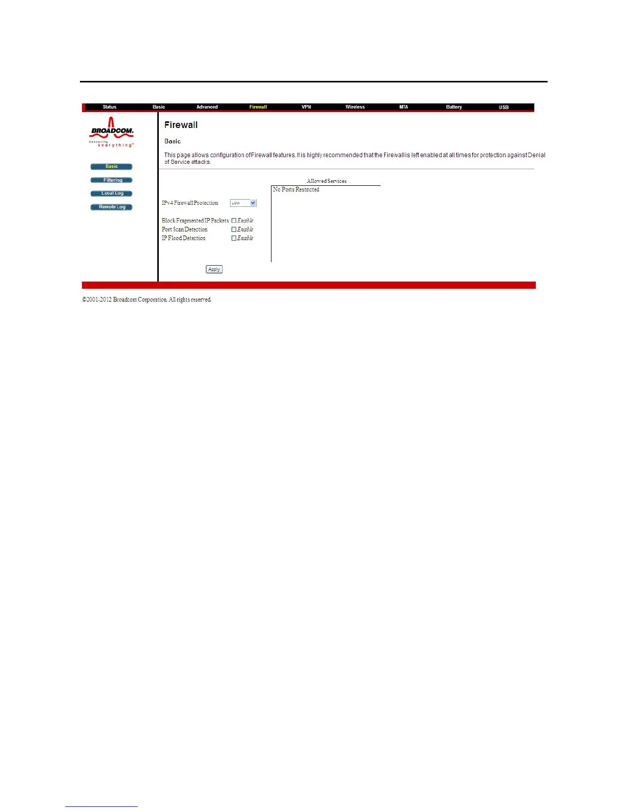 packet floods originating on both the LAN and WAN. The Apply button must be
