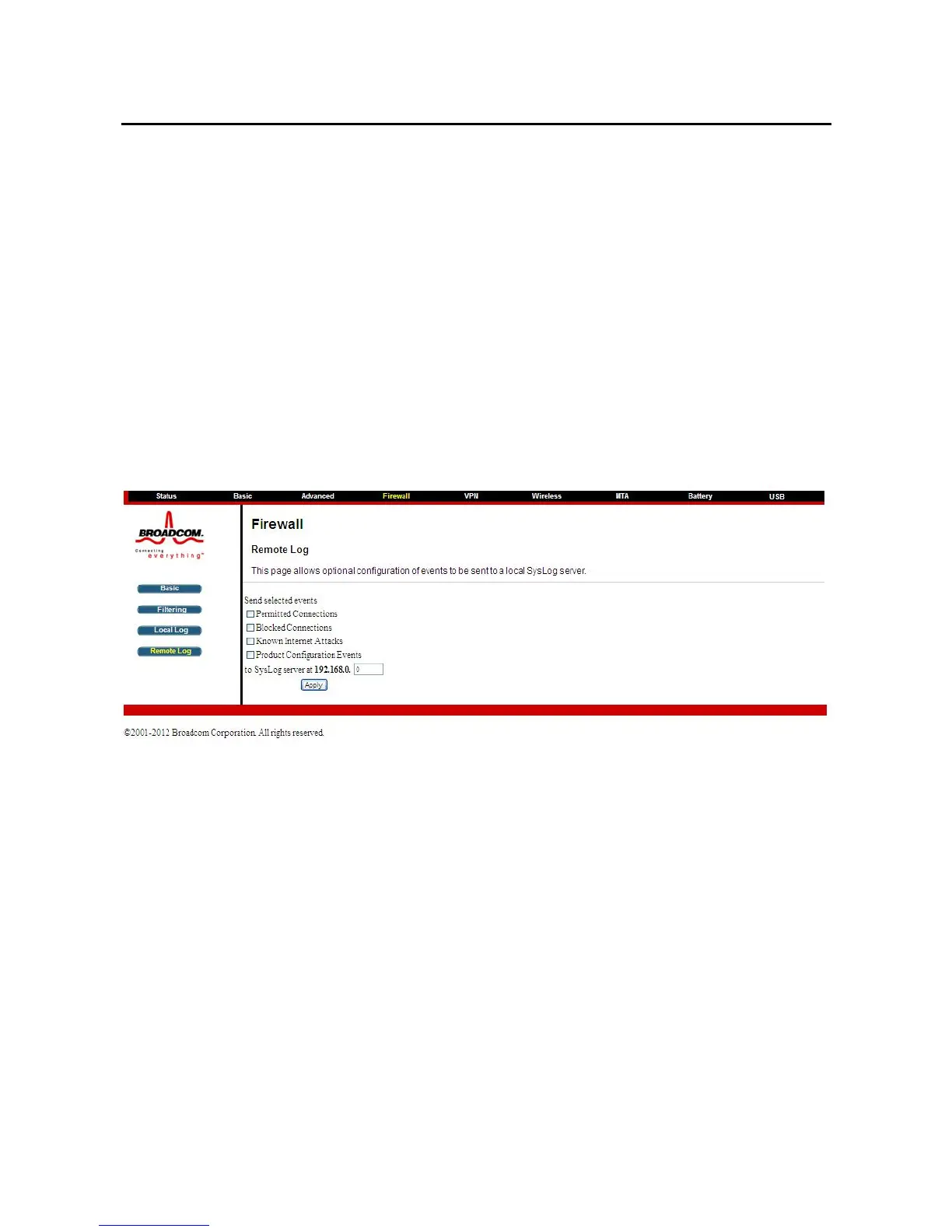 The Remote Log can send firewall attack reports out to a standard SysLog server so