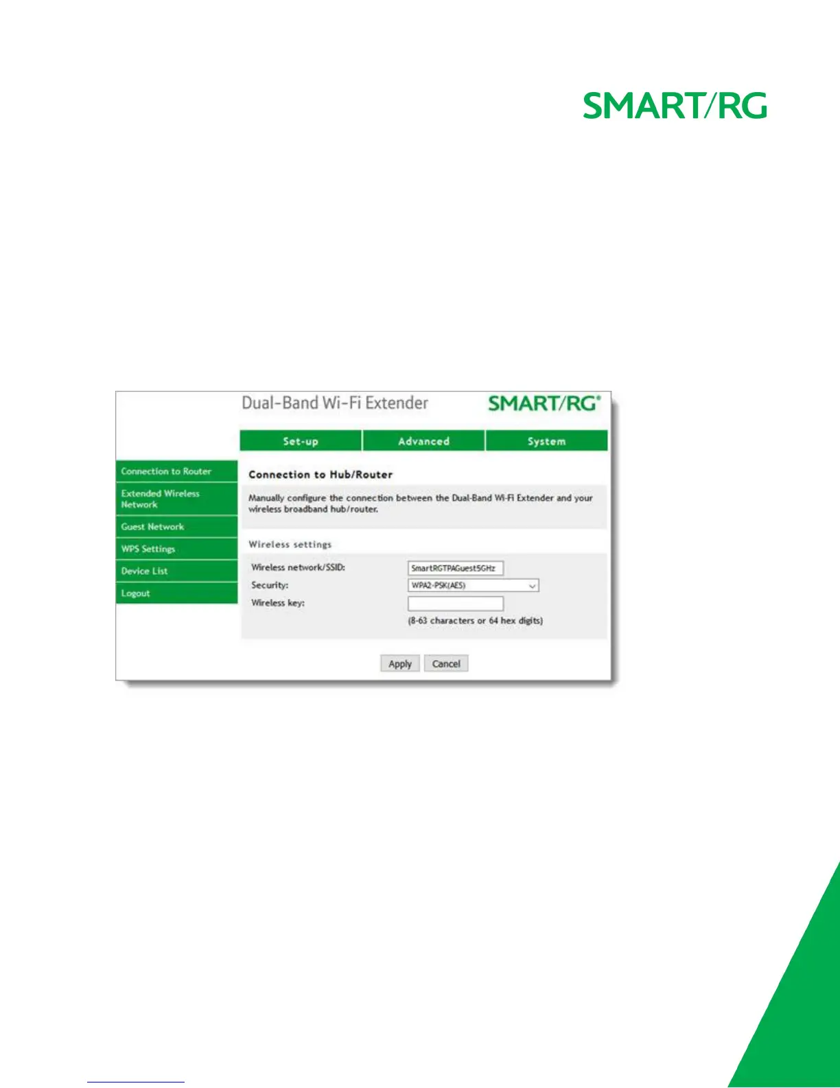 1. In the top navigation bar, click Advanced and then click Extended Wireless Network in the left menu.