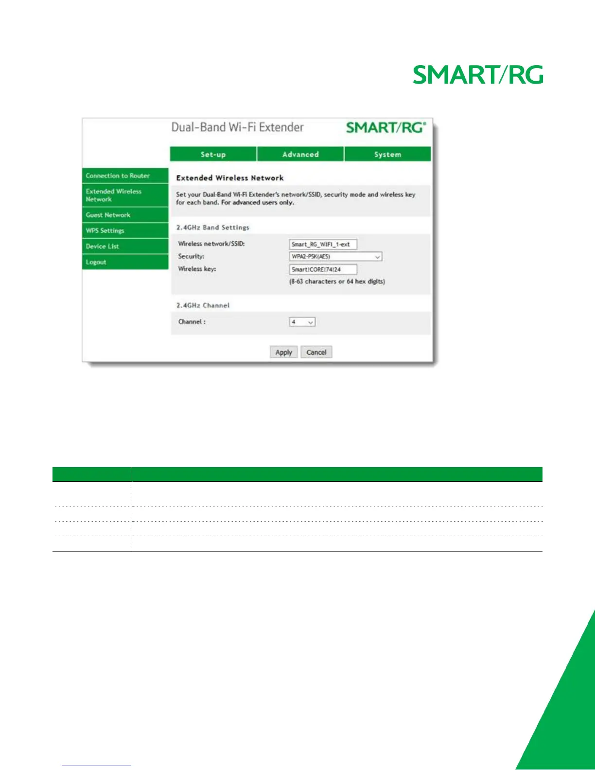 Wireless key Enter the wireless key for the extender (found on the back of the extender & in the Quick Start Guide).