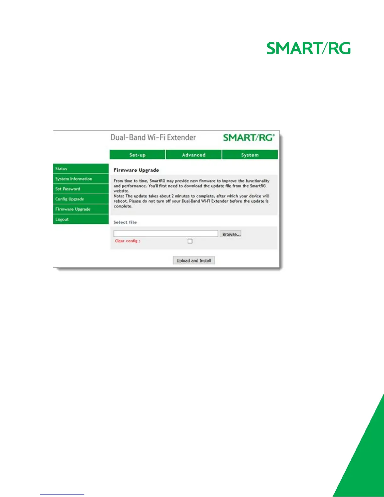 1. In the top navigation bar, click System and then click Firmware Upgrade in the left menu. The following