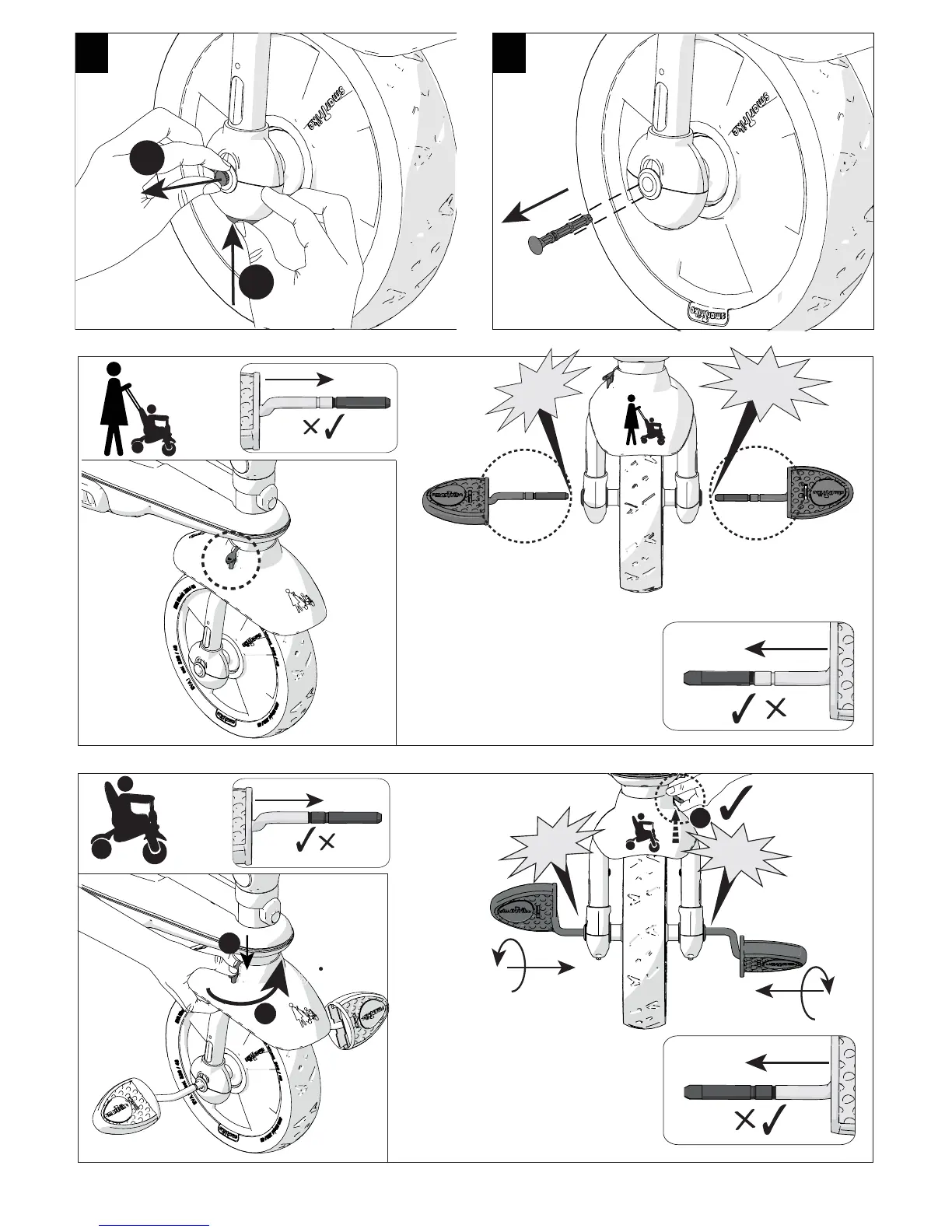 SmarTrike 500 - Operational Adjustments; Front Wheel Mechanism; Pedal and Wheel Lock