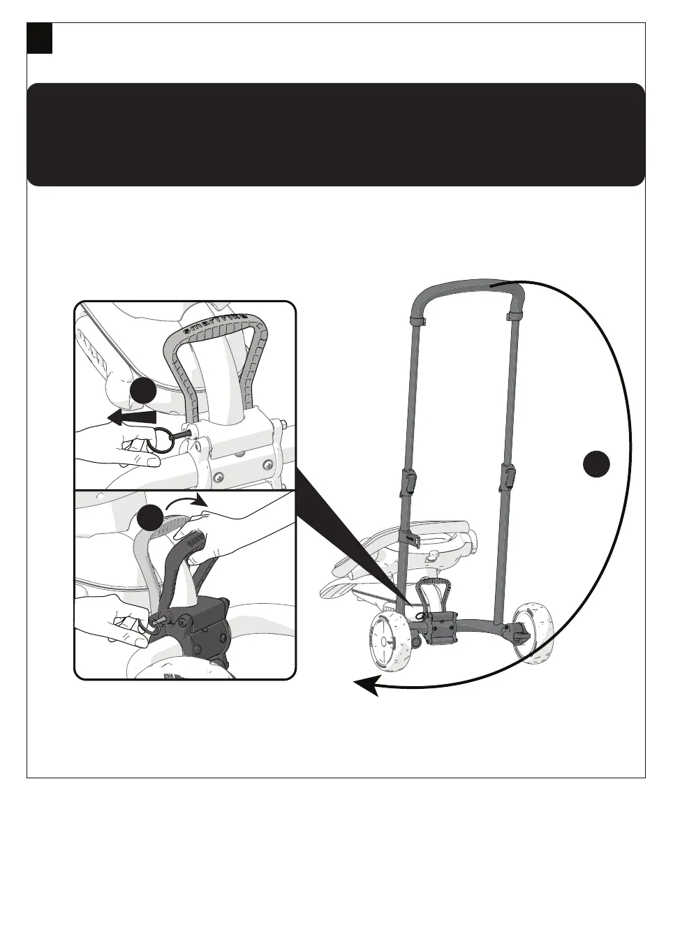 2. Pull the lever on the back of the frame and turn the parent Handle in the direction of the Arrow.