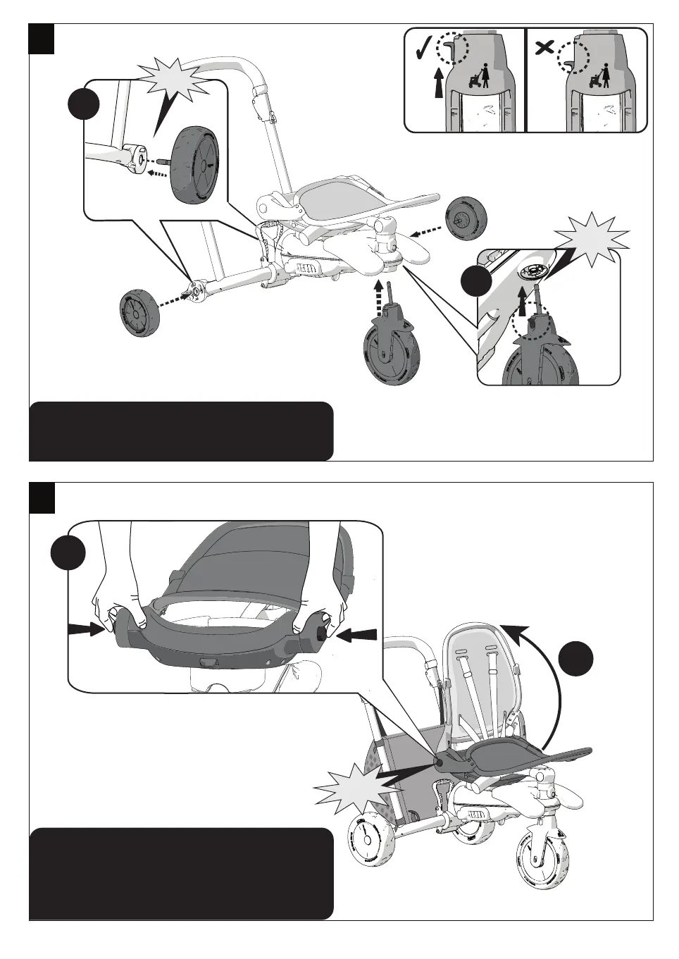 Click the wheels onto the frame.