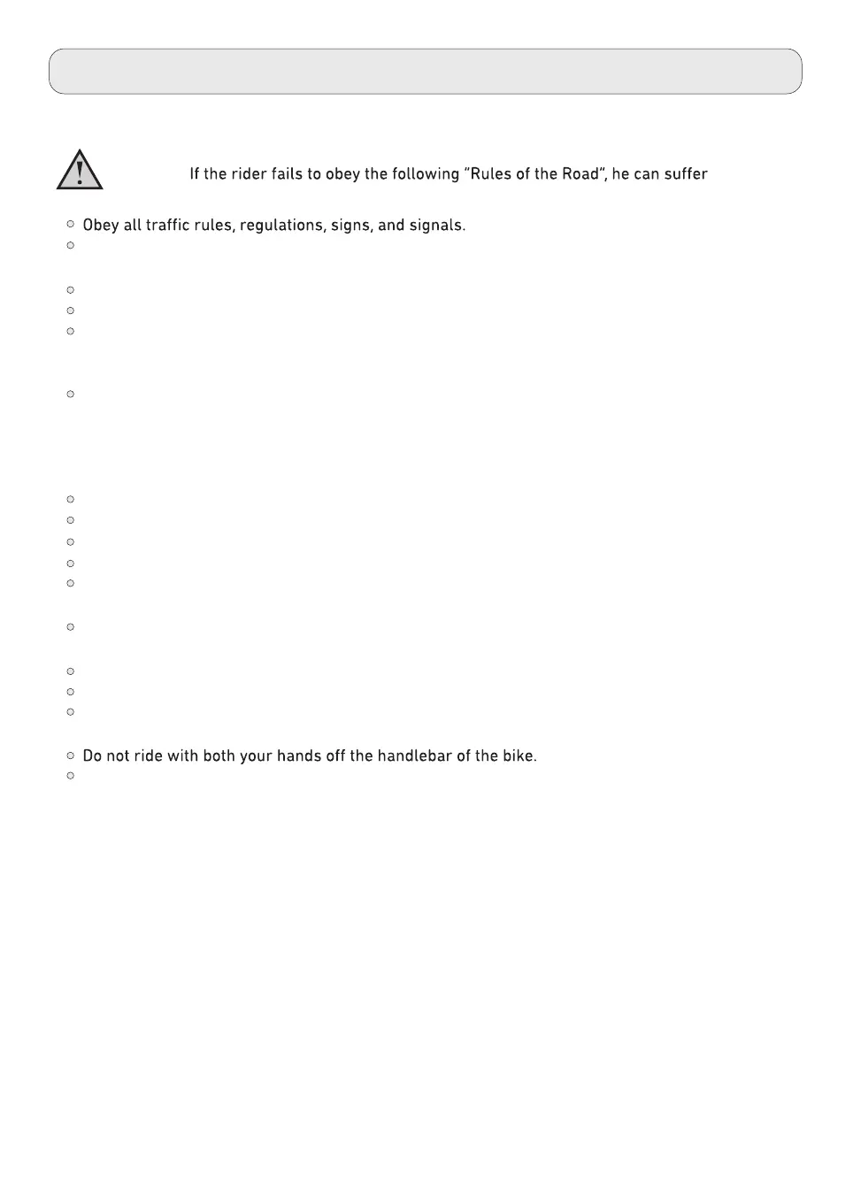 Unsafe actions must not be conducted while riding.