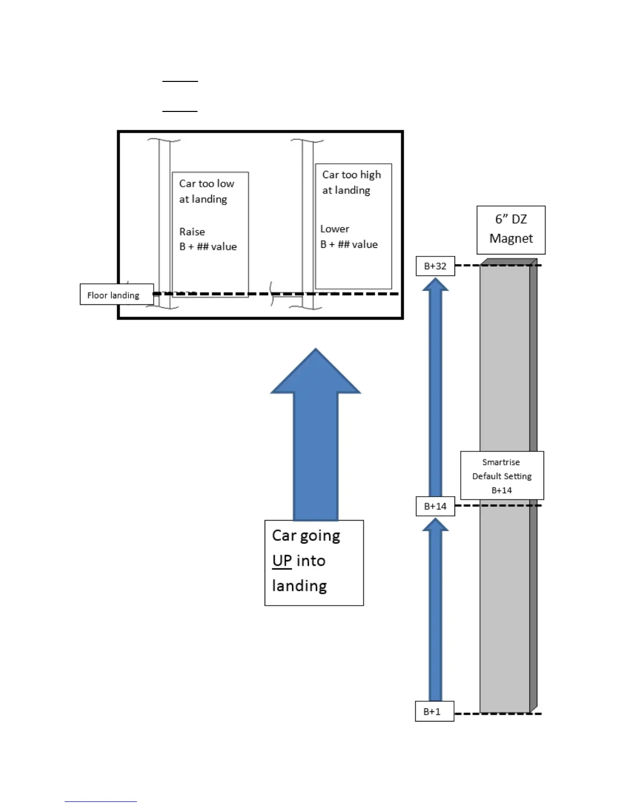If the car stops below the floor level the “B” value will need to increase.
