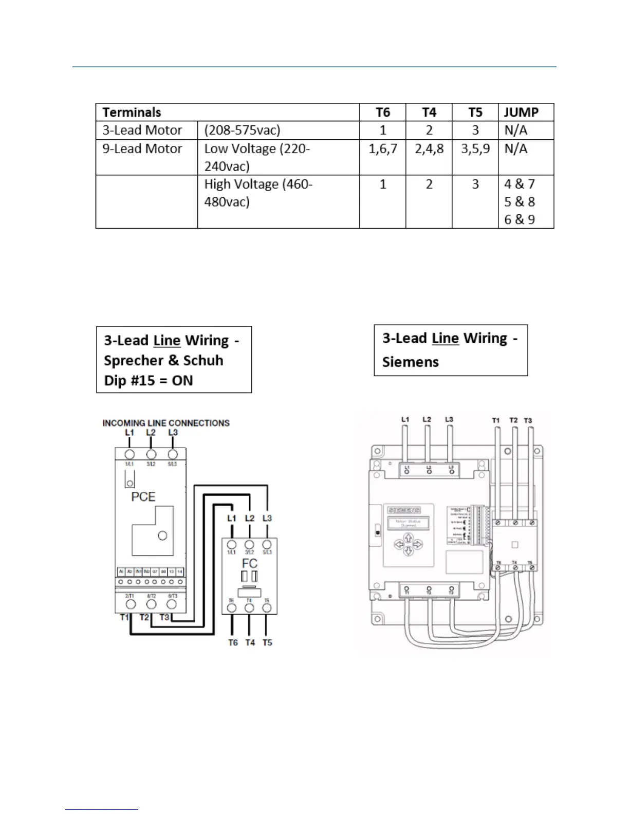Connect motor leads to the terminals T1/T2/T3 on the fault contactor.