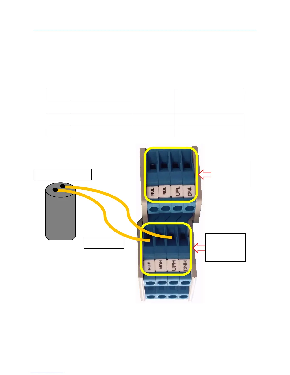 UP/DN DIN rail terminals. See drawings for connection reference.