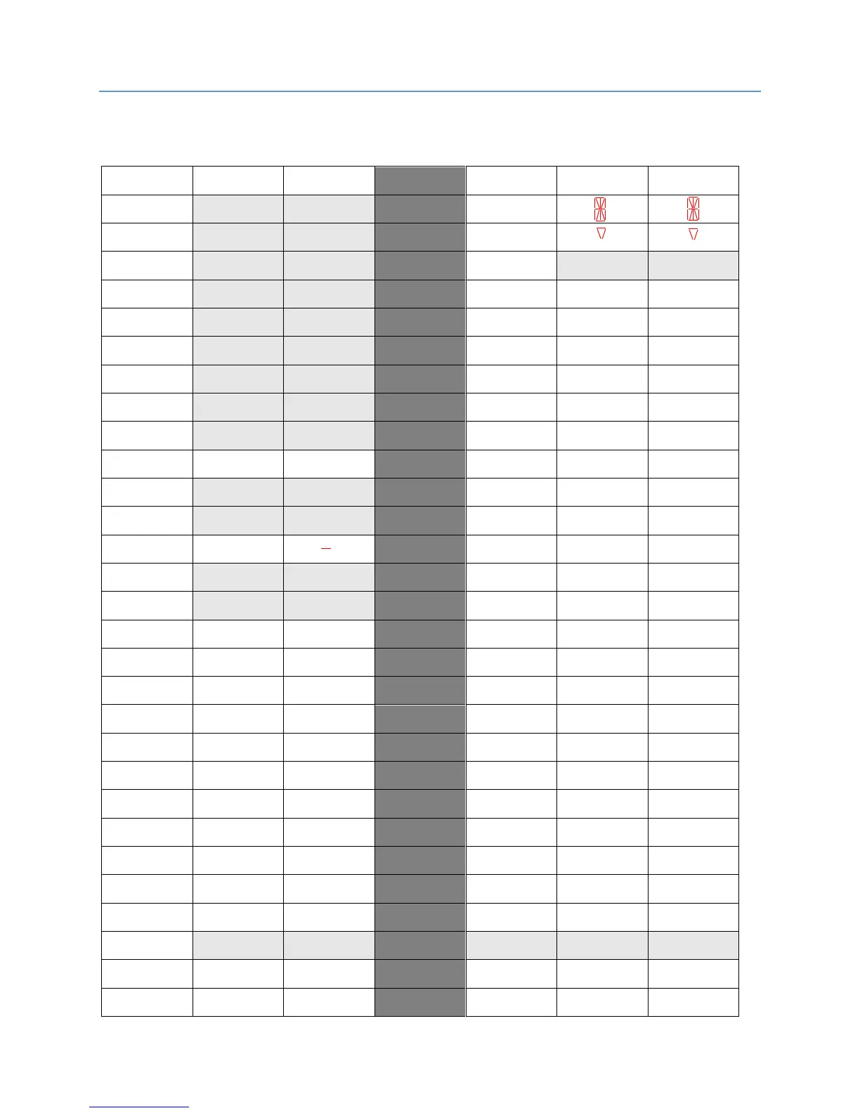 The following tables show the PI conversion for the Smartrise SRU board display, the Emotive