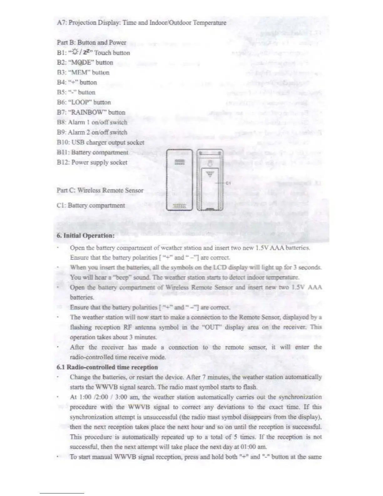 B: Button and Power