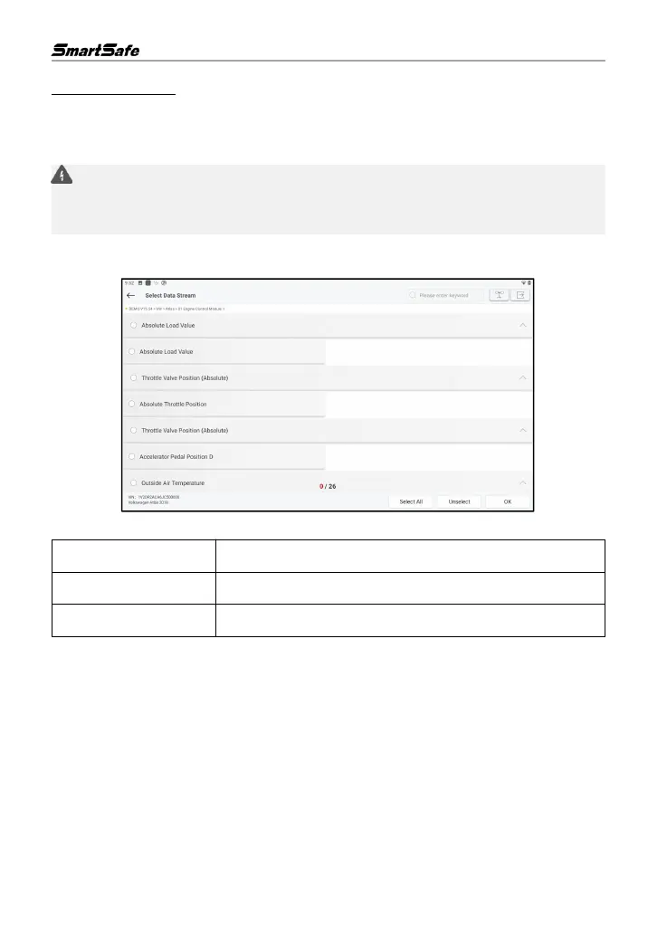 Click Read Data Stream on the test item selection page and the system enters the data stream