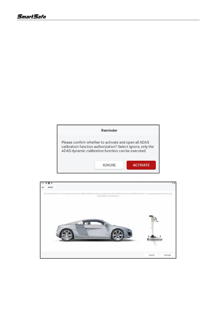 the following prompt box will pop up on the screen. Click ACTIVATE to enter the ADAS activation
