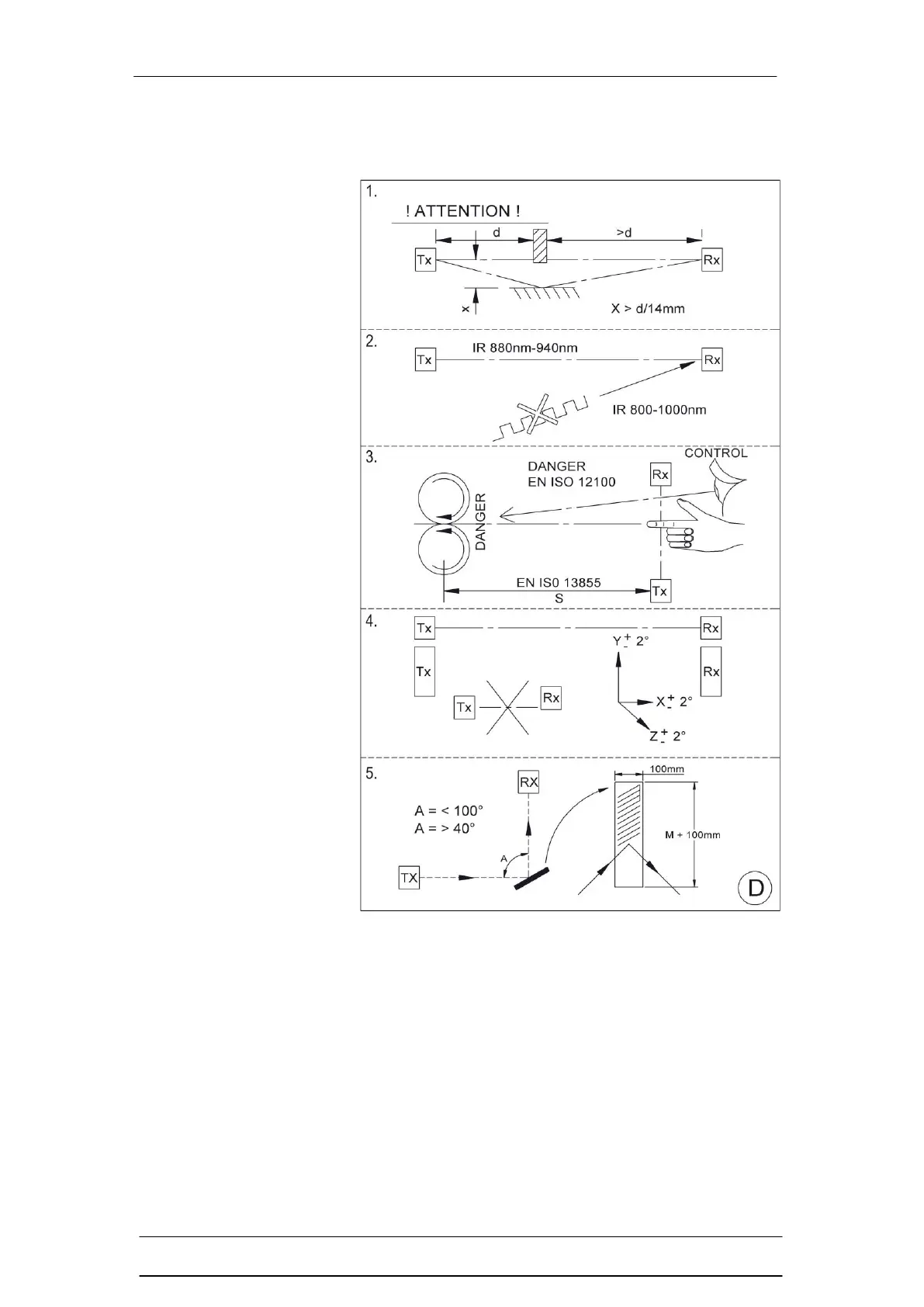 3. Ensure the mounting position of the safety light curtain in respect to the