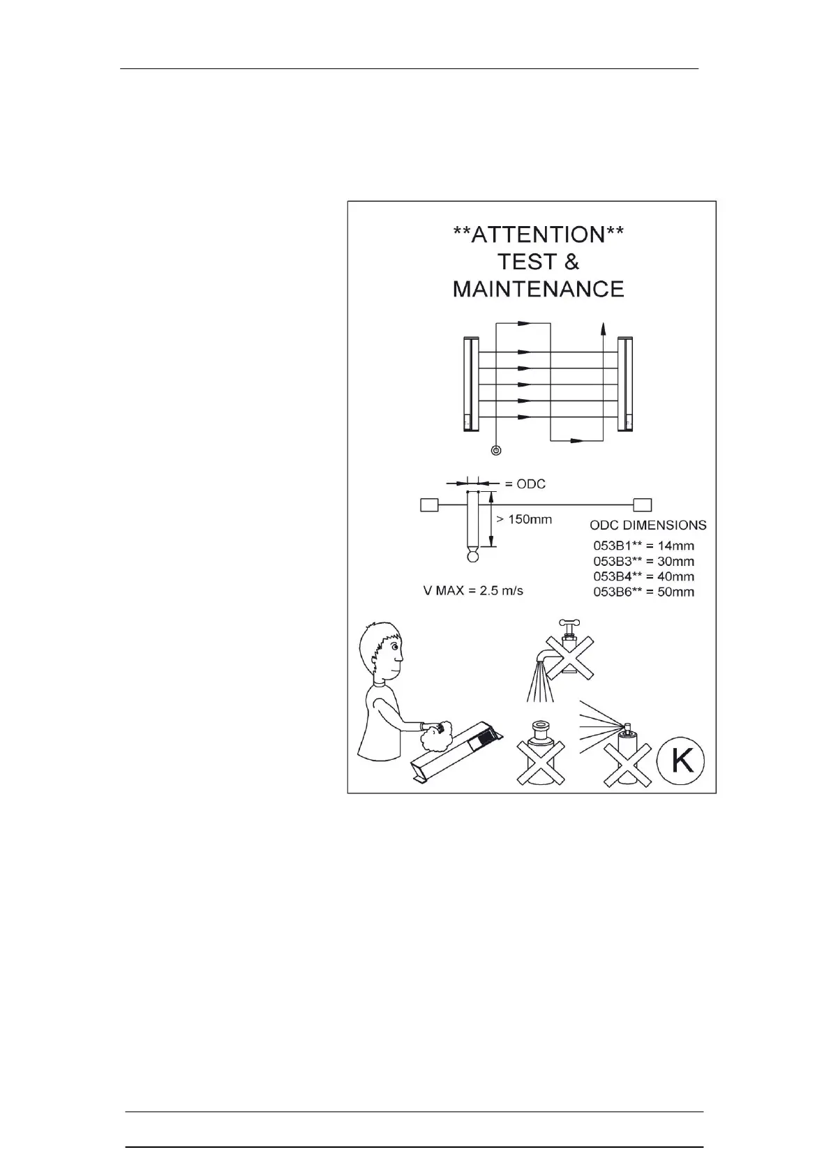 through the detection zone 150mm and parallel to the receiver unit. At no time