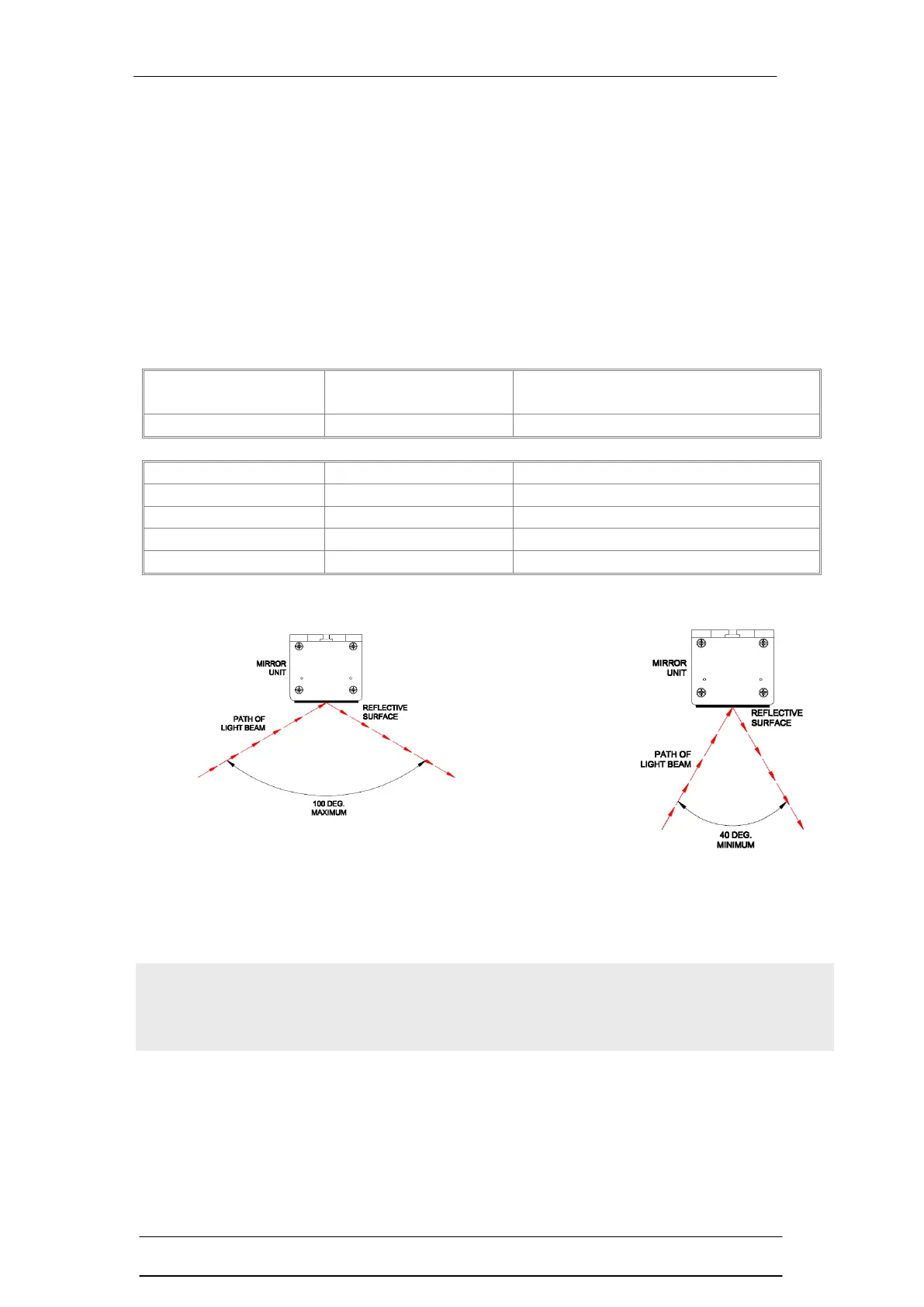 Note The mirror length must be a minimum of 100mm longer than the detection