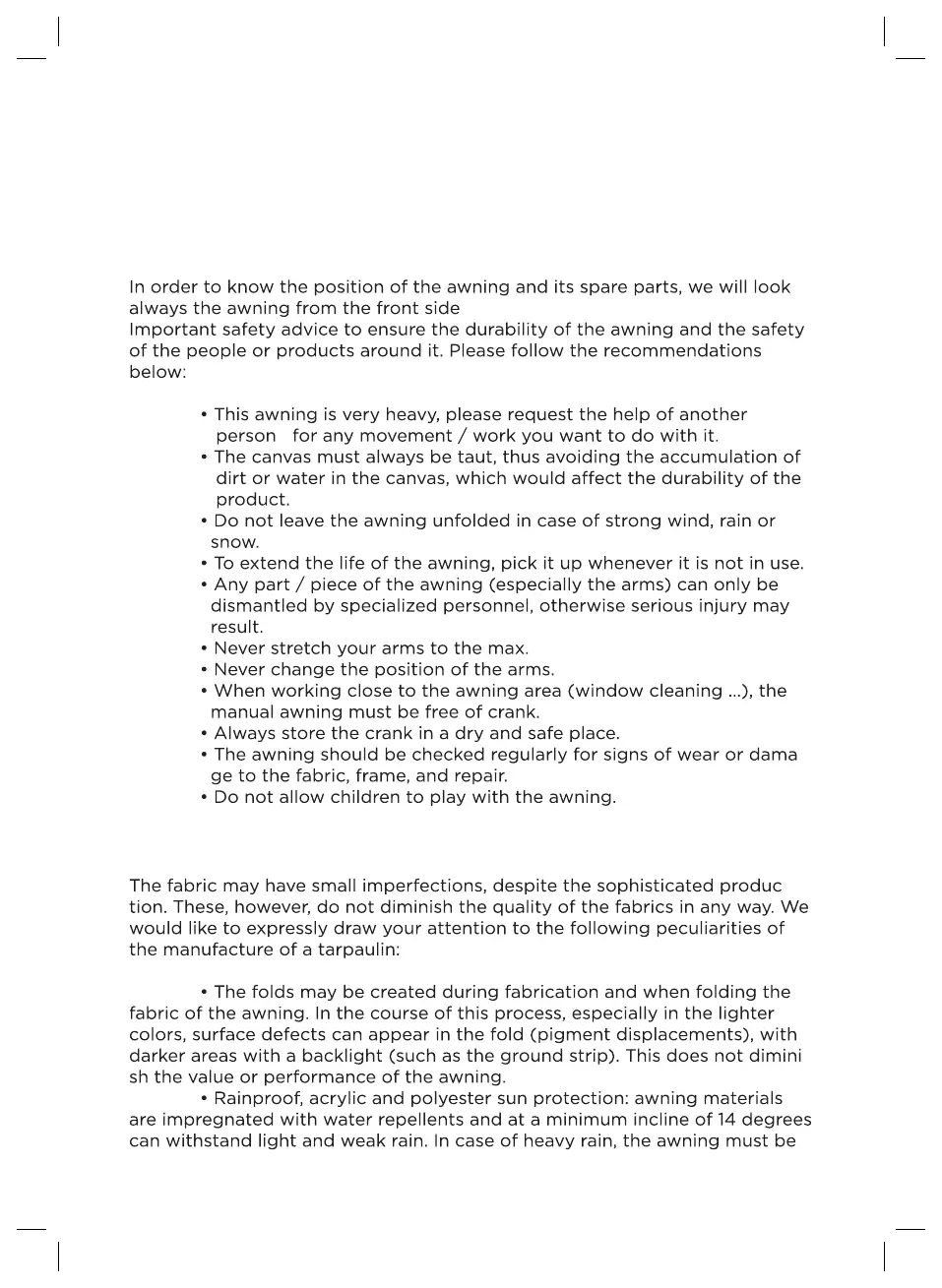 SmartSun Kronos - Recommendations for Use; General Notes on Awning Manufacture
