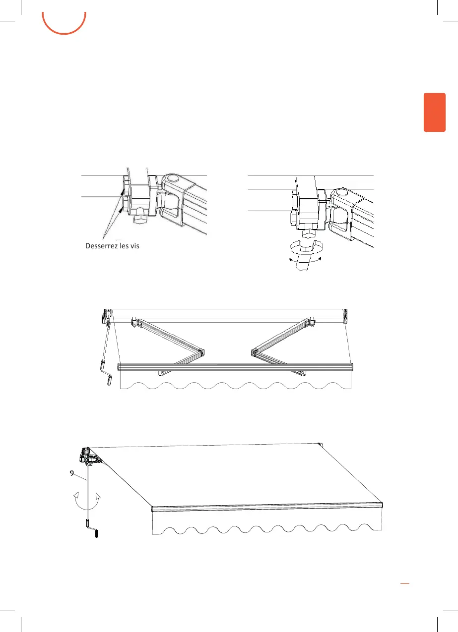 Ouvrez le store avec la manivelle. Vérifiez que la barre frontale soit