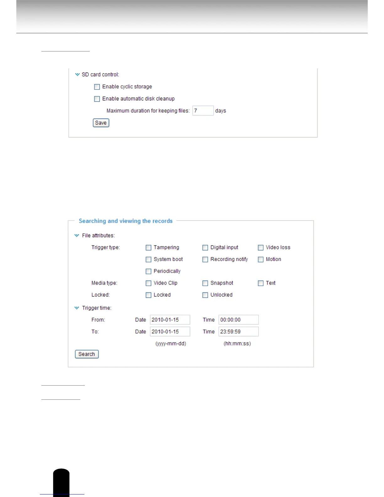 retain a le. For example, if you enter “7 days”, the recorded les will be stored on the SD