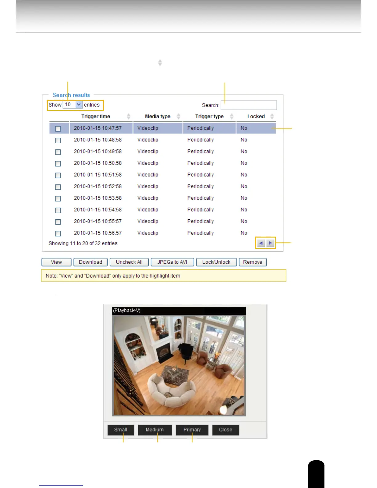 View: Click on a search result which will highlight the selected item in purple as shown above.