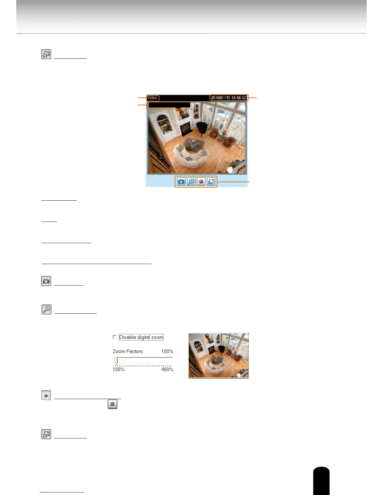Snapshot: Click this button to capture and save still images. The captured images will be
